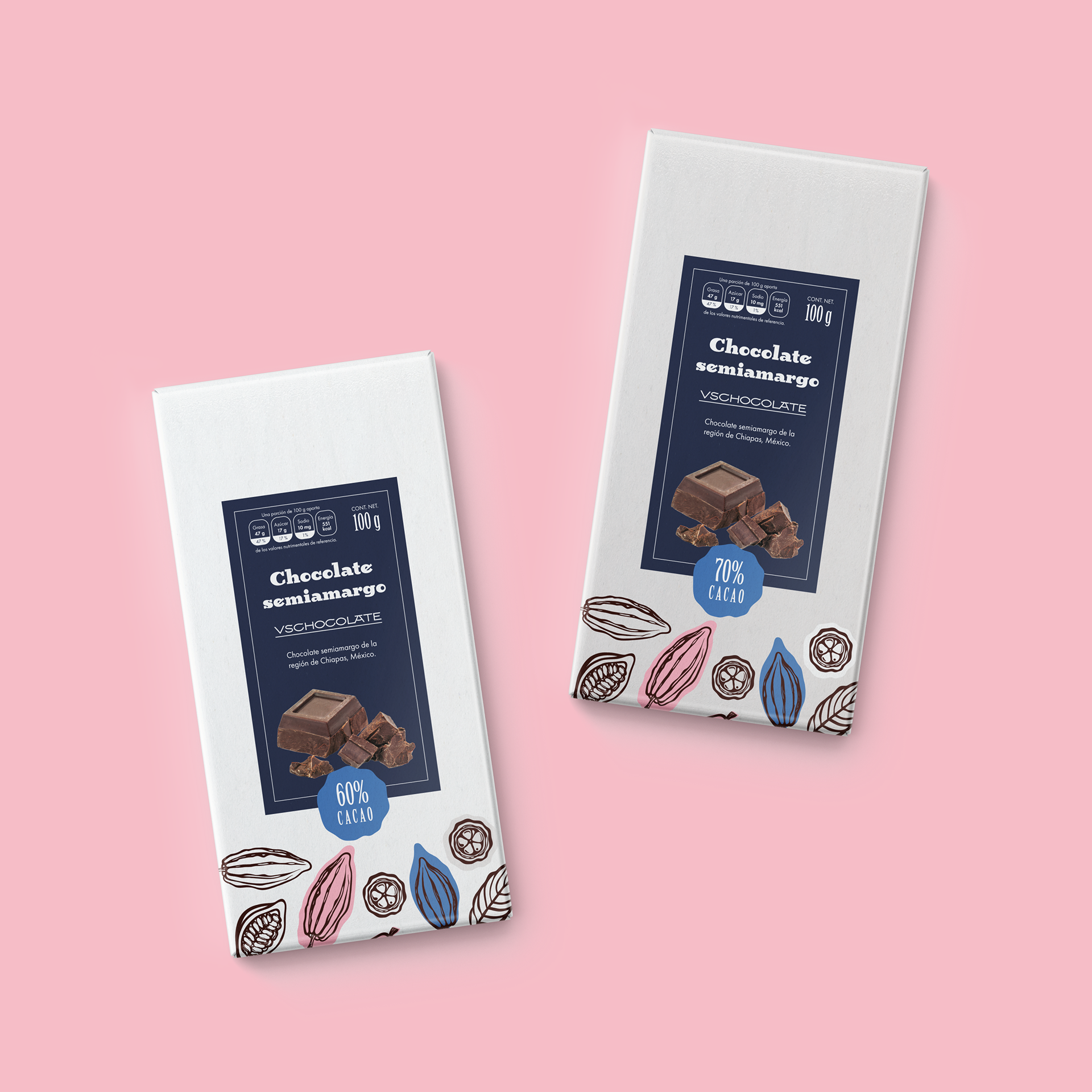 VSCHOCOLATE es una microempresa mexicana de venta de chocolates provenientes del Estado de Chiapas. Pasó de vender chocolate a granel a chocolate en forma de barras. El producto es en formato vertical con un tamaño estándar adecuado para la venta individual, aunque planean vender colecciones con combinaciones de sus líneas de sabor amargo, semi amargo y chocolate con leche.